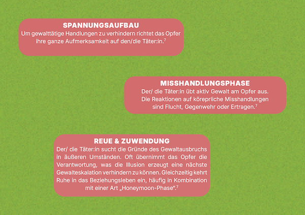Es gibt aber ein Element, das sie auf jeden Fall beinhalten sollte: die Gewaltspirale. In Ruhezeiten können Gewaltbeziehungen auch liebevoll sein. Dies macht es auch so schwierig aus ihnen auszusteigen. Die Realität wird oft durch einen “Schleier der Liebe” verharmlost, die Gewalt wird “verziehen” oder “vergessen”. Um Beziehungsgewalt sensibel und realitätsnah zu inszenieren ist es also essentiell…