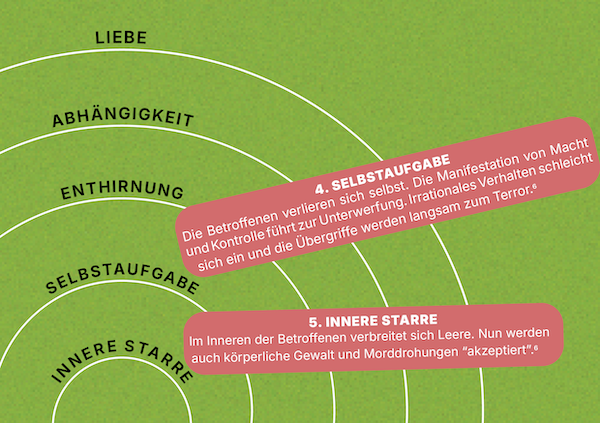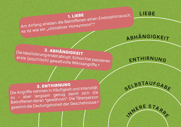 Anhaltende psychische Gewalt höhlt die Betroffenen allmählich von innen seelisch aus. Der Wille wird gebrochen, die eigene Entwertung wird als Wahrheit anerkannt. Die langsame Steigerung der Gewalt führt dazu, dass die Partner:innen die Gewalt nur schwer als solche identifizieren – und auch von außen bleibt die Gewalt häufig unentdeckt. Familiensysteme und soziale Beziehungen sind nicht unabhängig vom Gesellschaftssystem und unterliegen daher auch der darin innewohnenden strukturellen Gewalt. Häufig sind finanzielle Abhängigkeit oder gesellschaftliches Bagatellisieren (oder gar Schuldumkehr) zentrale Aspekte, die eine Gewaltbeziehung langfristig am Leben halten.