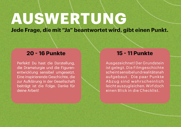 Gratulation! Du hast bereits ein Drehbuch oder einen Film geschaffen. Dann ist dein Werk bereit zum Selbstcheck. Unabhängig von Kernthema und Genre können diese Fragen wichtige Hinweise zur Einschätzung der Sensibilität eines Filmwerkes bringen oder zur Verbesserung des Drehbuchs führen.
